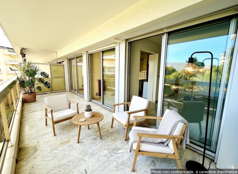 Au cœur du quartier prisé de la Rostagne à Juan-les-Pins, dans la résidence de standing Le Mas du Tanit, reconnue pour son parc arboré, sa piscine et la présence d’un gardien,